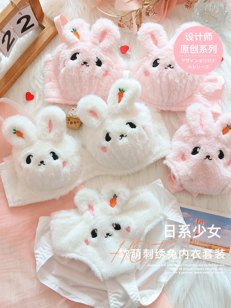 Plush Underwear, Sweet Japanese Style, Cute and Warm, No Steel Hoop, Wrappy Bra