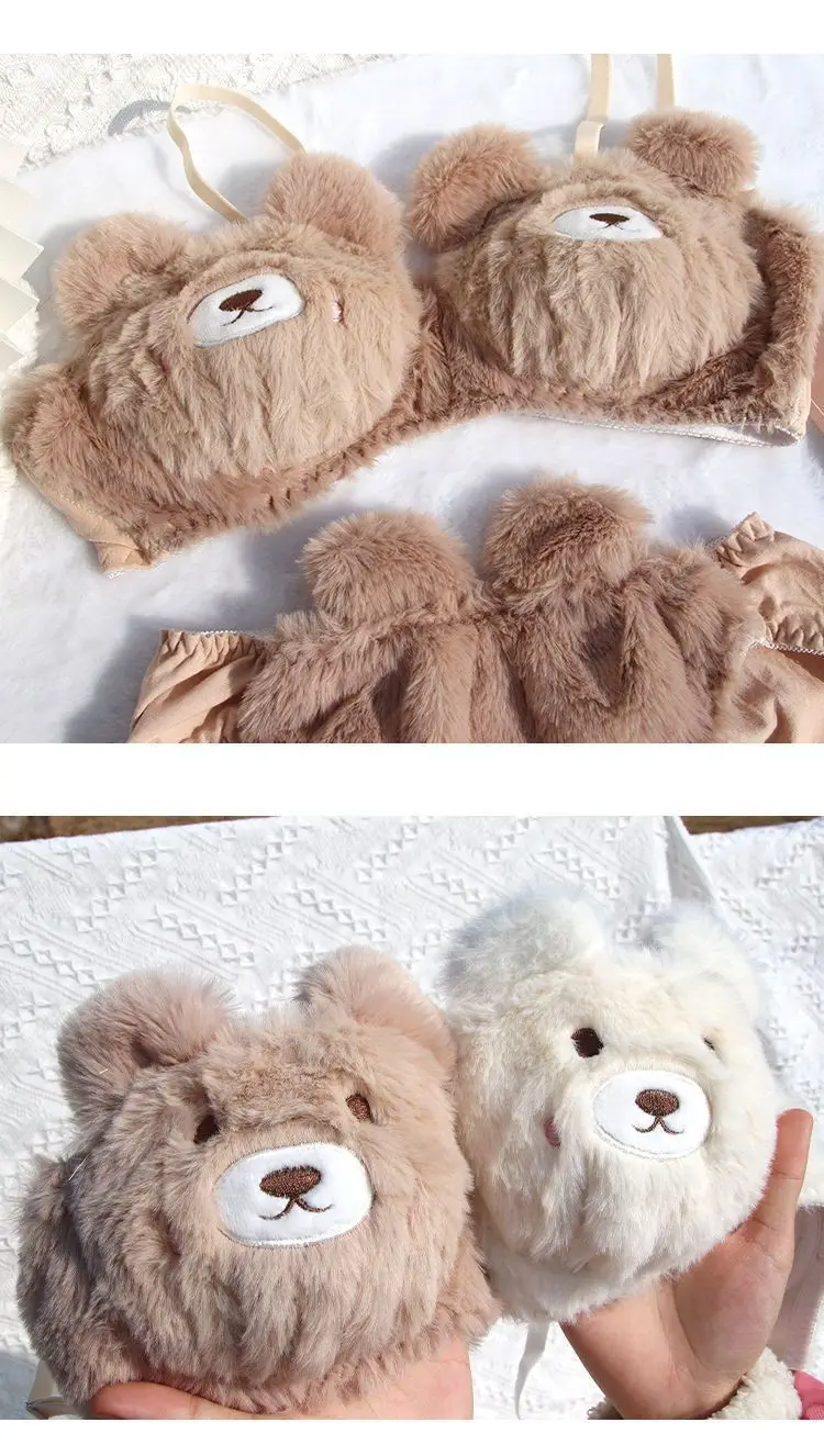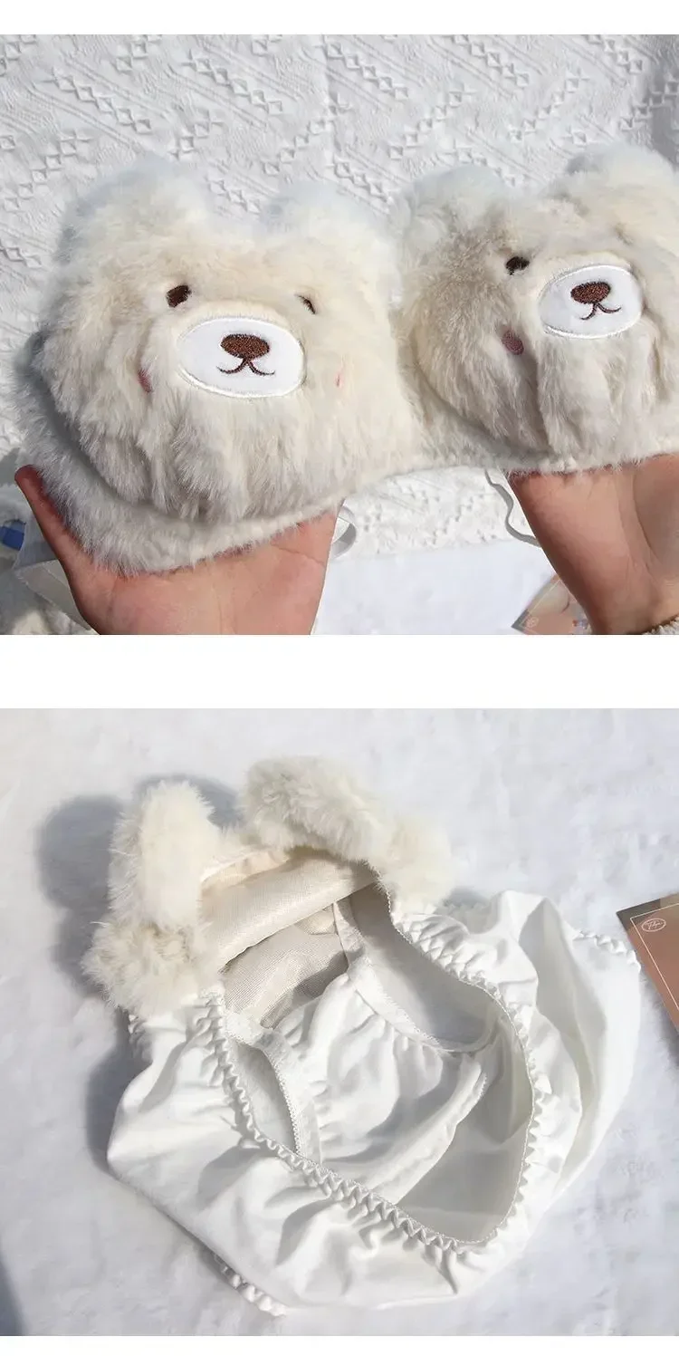 Soft and Cute Bear Japanese-Style Lingerie for Women, Autumn and Winter Cartoon Plush Comfortable and Adorable Girl Bra